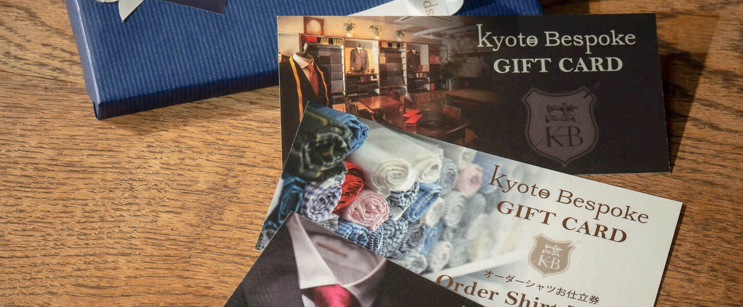 Kyoto Bespokeでは、大切な方への贈り物としてオーダースーツ・オーダーシャツのお仕立券をご用意しております。結納返し・誕生日プレゼント・成人式・入学式・卒業式・昇進お祝い・その他内祝いなど、人生の節目となるタイミングに、思い出に残る1着を仕立てる【お仕立券】を贈られてみてはいかがでしょうか。時間をかけてオーダーをするという体験そのものも1つのプレゼントとなり、忘れられない時間と仕立てた服を見るたびに、どんなときでも「あの素敵な時間」に記憶を戻らせてくれることでしょう。